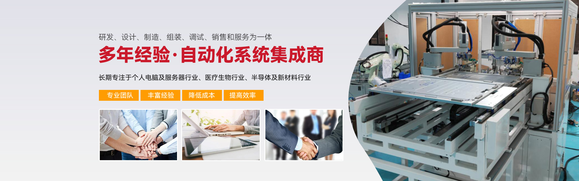 ※ 長期專注亍個(gè)人電腦及服務(wù)器行業(yè)、醫(yī)療生物行業(yè)、半導(dǎo)體及新材料行業(yè)三大行業(yè)的自動(dòng)化組裝、檢測(cè)設(shè)備的生產(chǎn)與開發(fā)。